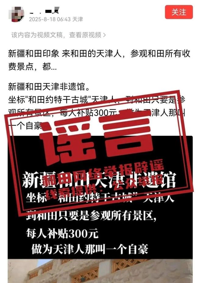 “有300元的补贴来参观Hotan的风景秀丽的地区。”官员:虚假观察