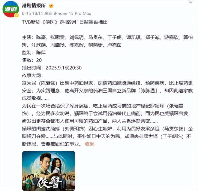 TVB反对中国传统草药,新戏称为“英雄医生”,为一部新戏剧编程,Chen Hao和Zhang Xiwen再次联手